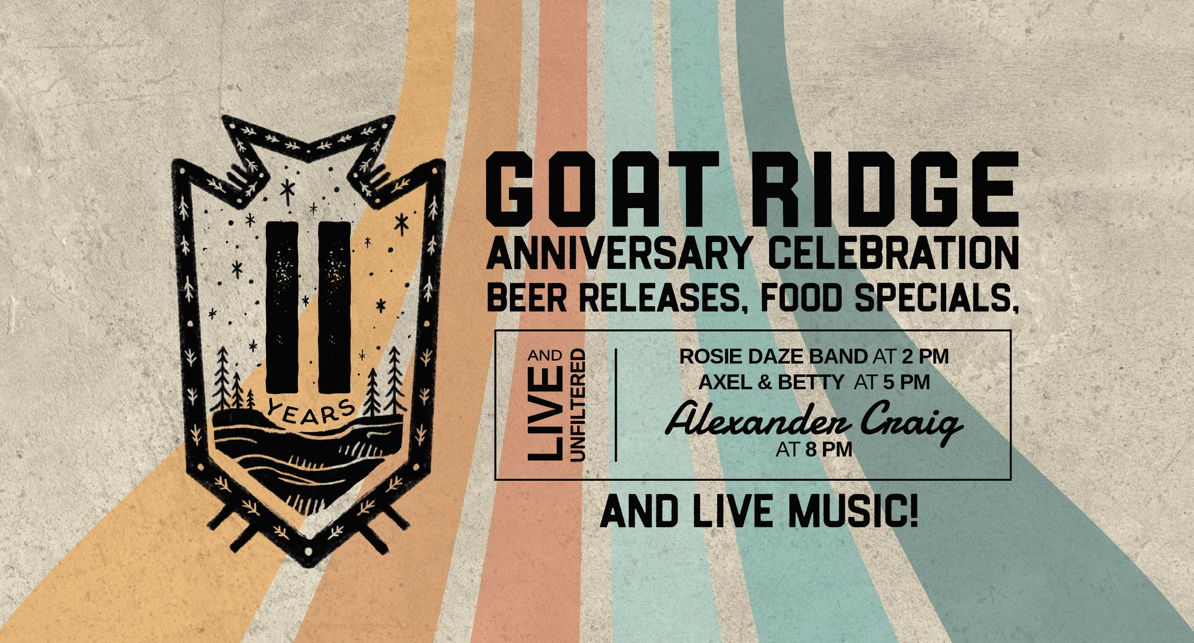 Celebrate 11 years of Goat Ridge Brewing with us on Saturday, April 11th! 🍻